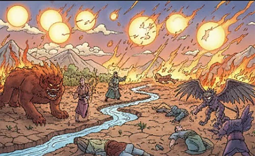 The Yellow Emperor swung his sword again, splitting the mountain open, and Xing Tian’s head was found and buried deep within it.