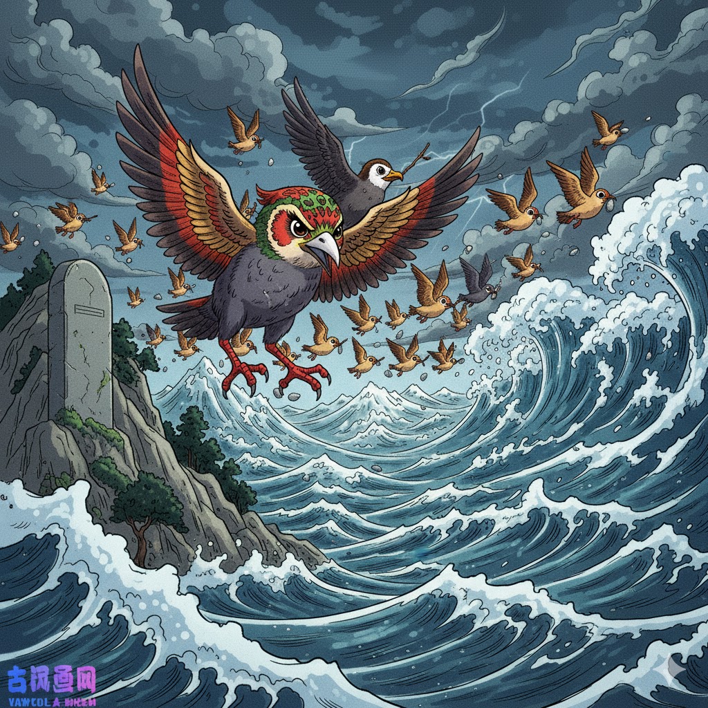 People even erected a stone monument by the Eastern Sea to commemorate the place where Jingwei vowed to fill the ocean.